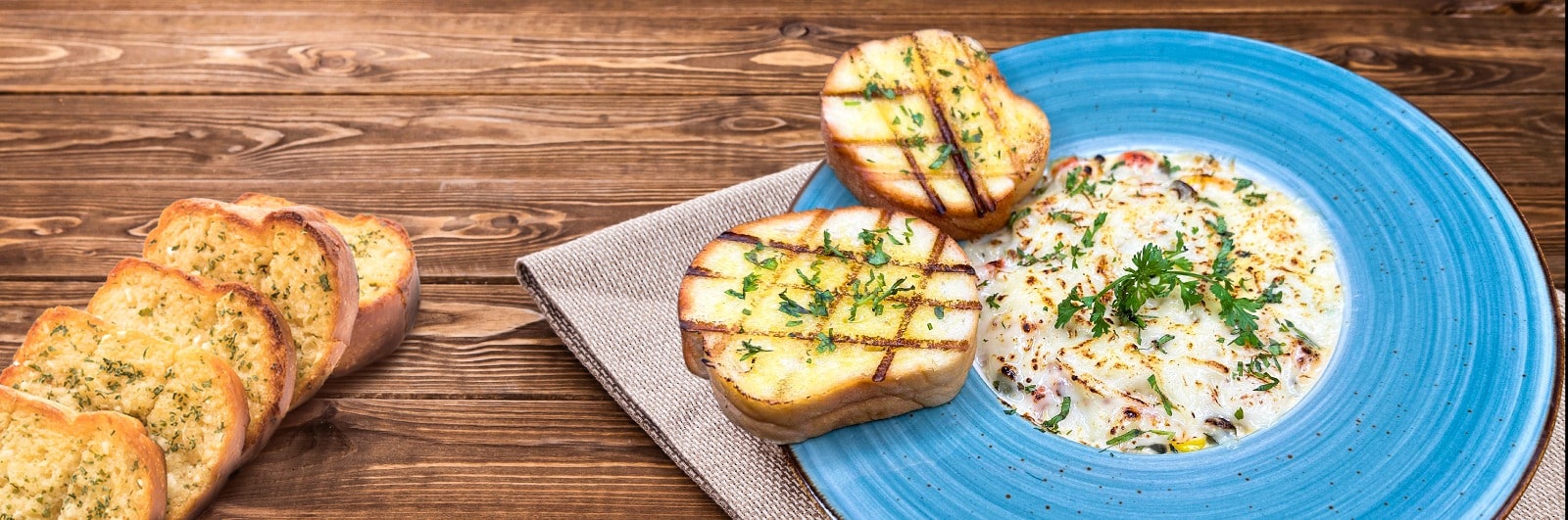 (Duet Sauce Exotic Mix Veg with layered pasta sheet. Served with garlic toast.)Â
