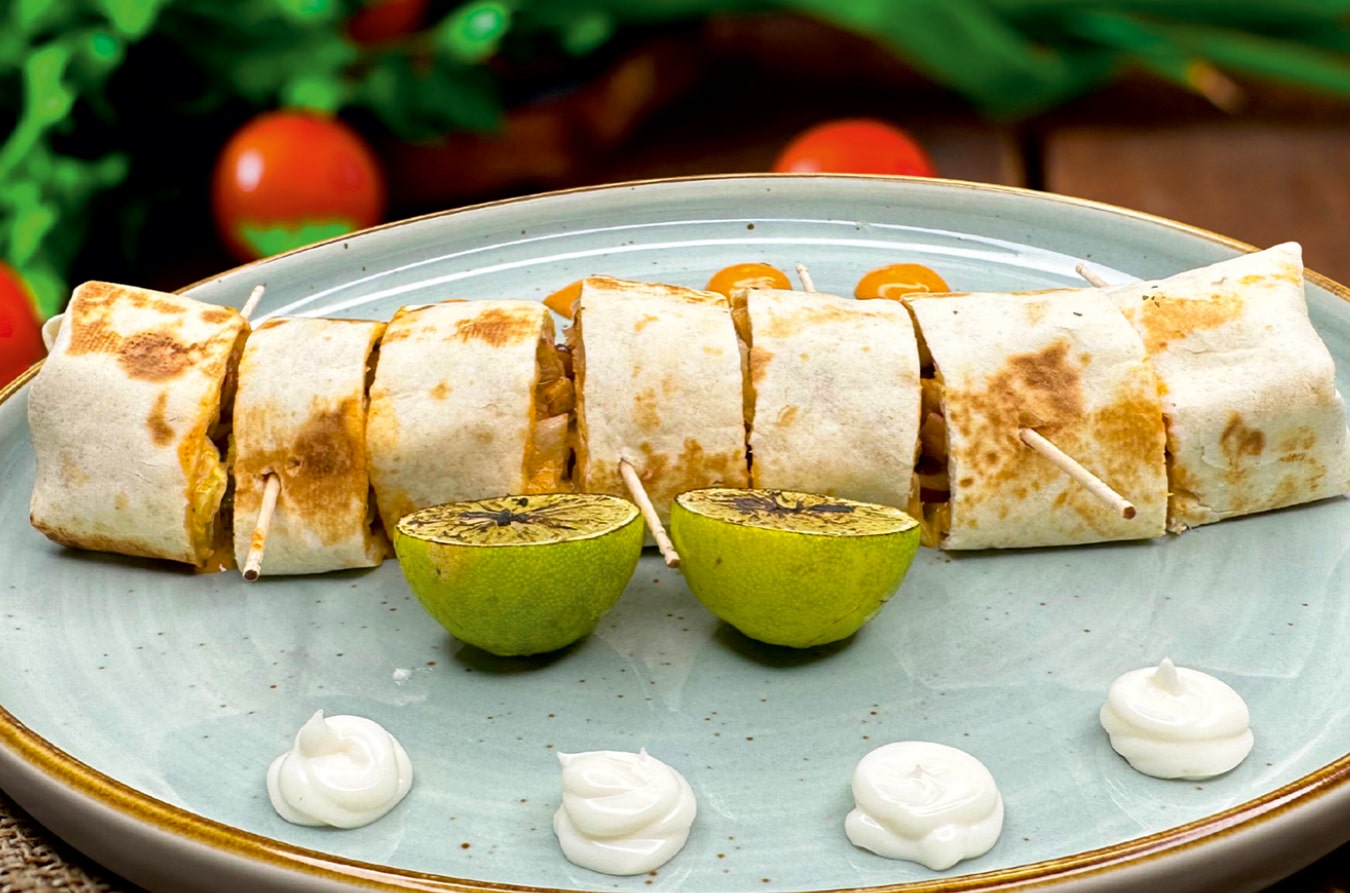 (The classical Mexican Fajitas are now Indianised. We use whole wheat tortilla bread which we stuff with chicken marinated in spicy and tangy sauce, Iceburg Lettuce and Chipotle spread.)